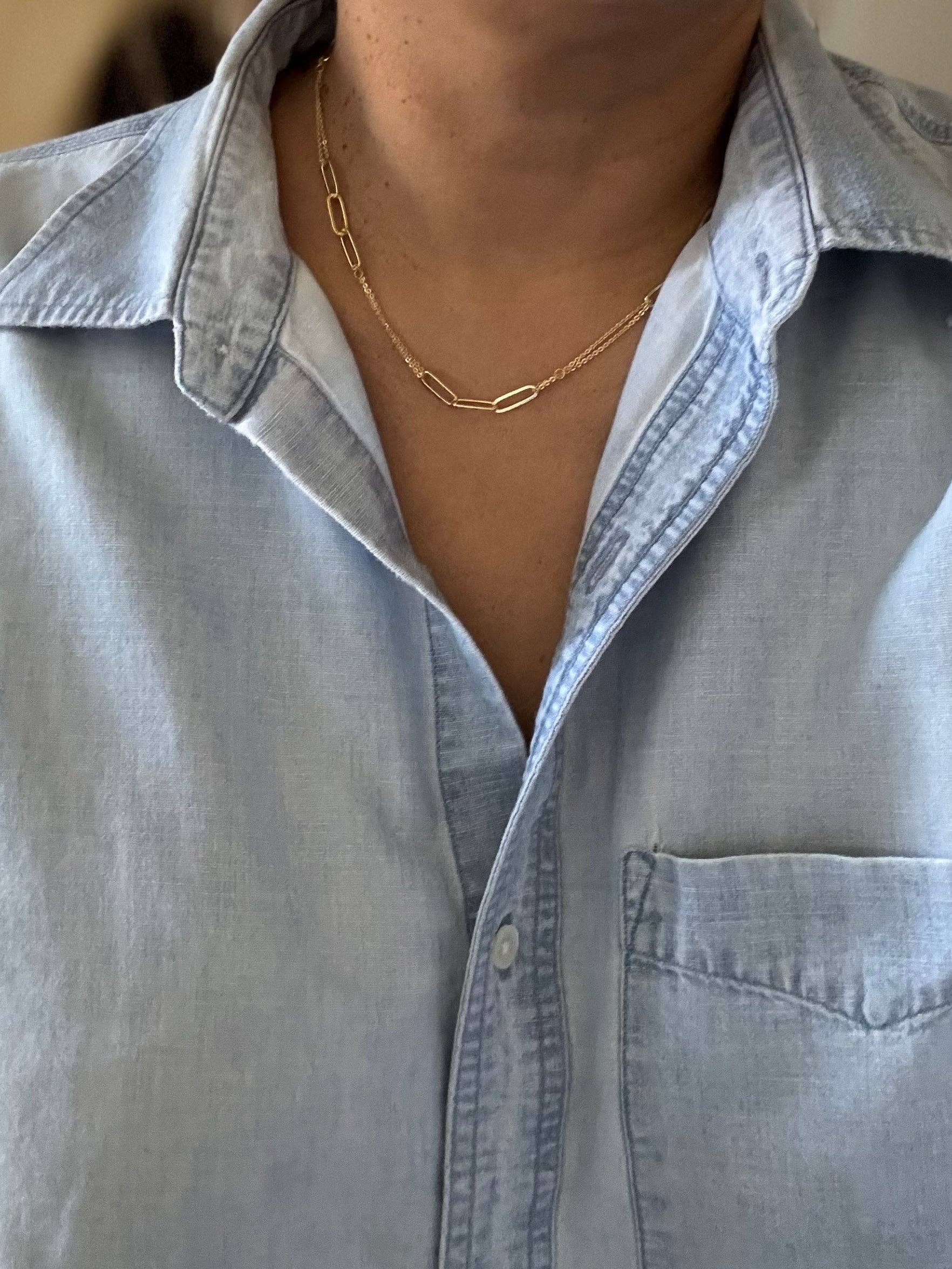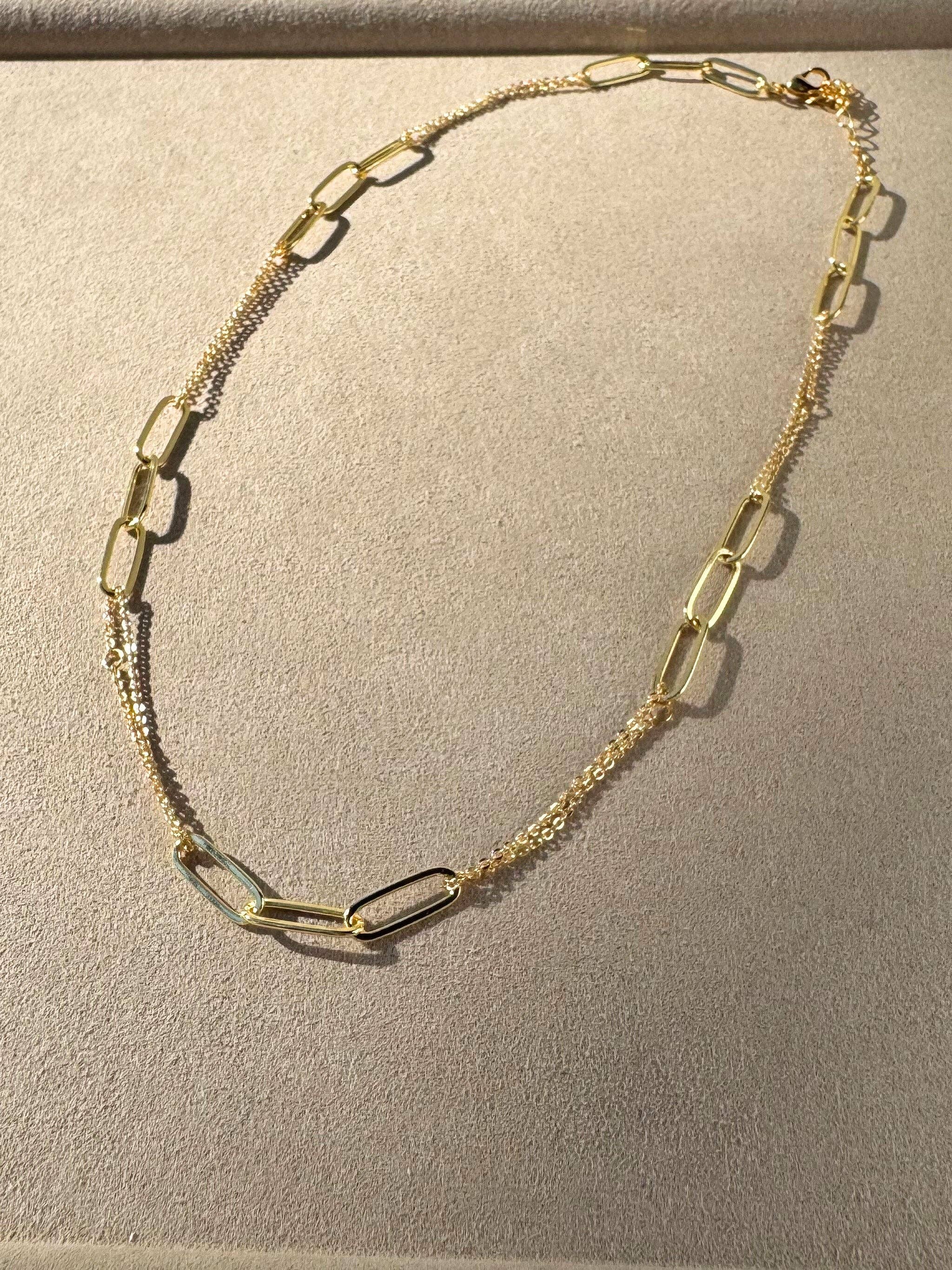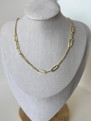 A little edge, a little shine—this mixed chain gold necklace is your go-to piece for everyday style with a twist. Featuring two distinct chain styles and a polished gold finish, it layers beautifully or makes a statement all on its own. Dress it up or keep it casual—either way, this piece brings just the right amount of bold.